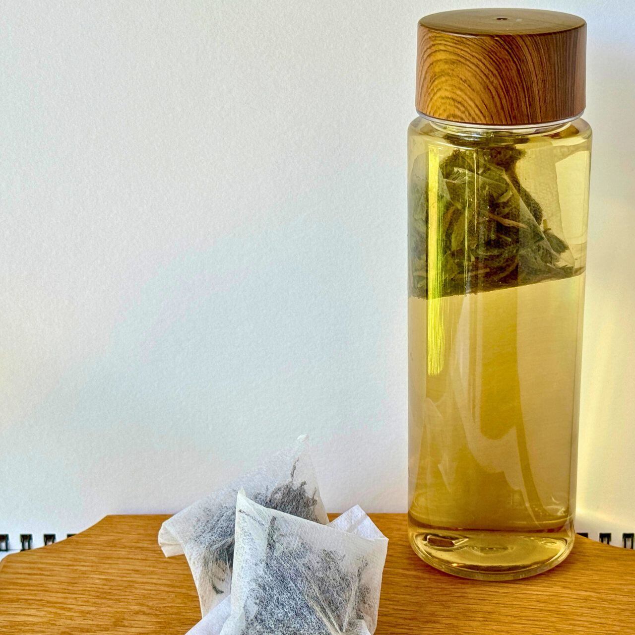茶葉をティーパックに詰めました。ボトル(500ml)で一晩水出しすると、香りと甘さが引き立つお茶を楽しめます。
